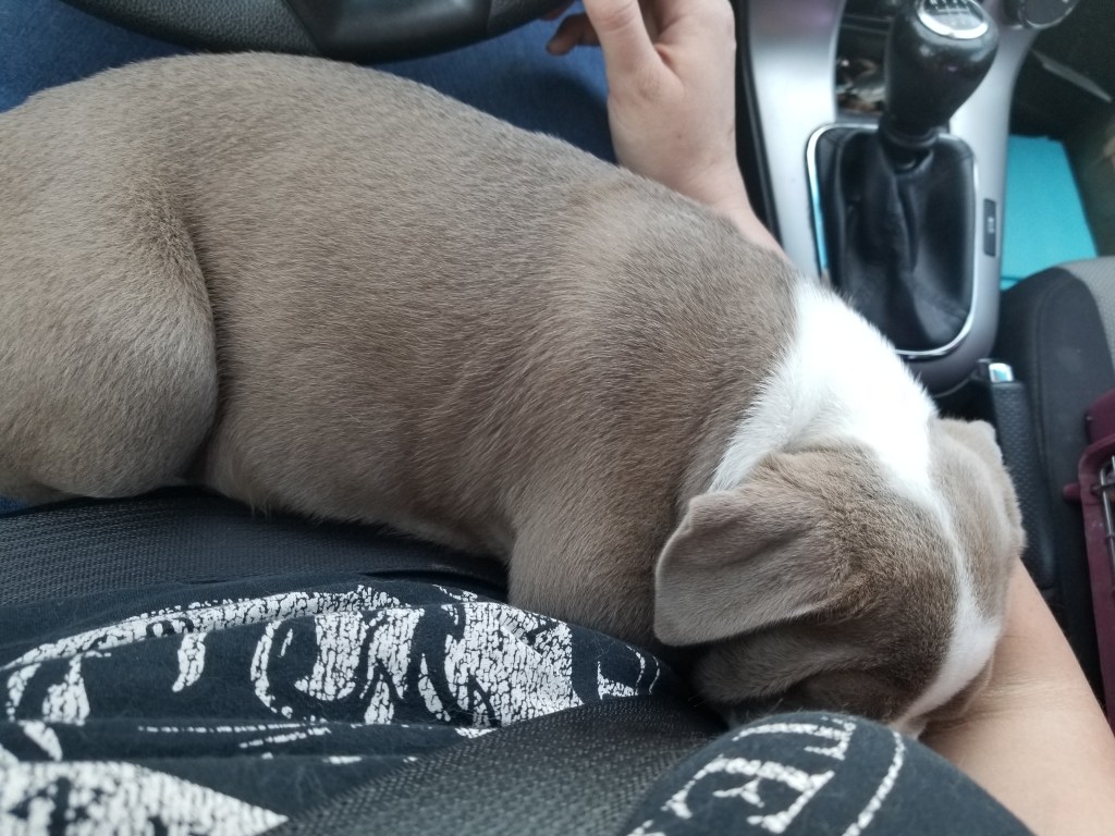 For just a moment I thought of the 7-week-old puppy I brought home, to this house, ironically all the way from the town I live in now. I put her in a crate for the hour-long drive, but she cried and cried, and in traffic, I let her out and kept her cradled on my lap. She tucked her nose into the crook my arm, and immediately fell asleep, silent for the rest of the ride.